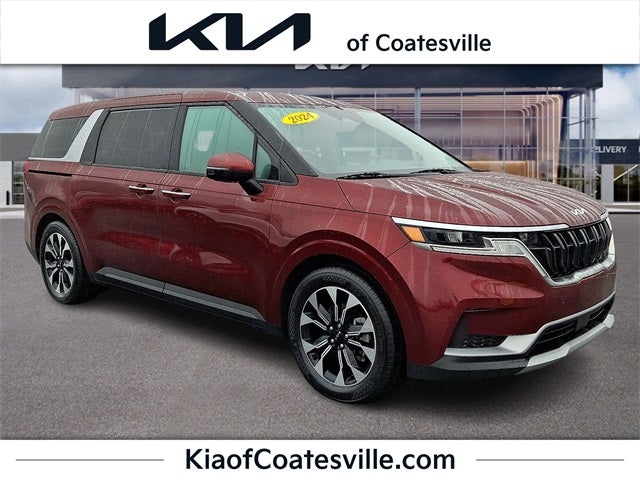 Check out all these great option's Kia Certified, 10 Speakers, 3.51 Axle Ratio, 3rd row seats: split-bench, 4-Wheel Disc Brakes, ABS brakes, Air Conditioning, Alloy wheels, AM/FM radio: SiriusXM, Apple CarPlay & Android Auto, Artificial Leather Seat Trim, Auto High-beam Headlights, Automatic temperature control, Brake assist, Bumpers: body-color, Carpeted Floor Mats (8-Passenger), Compass, Delay-off headlights, Driver door bin, Driver vanity mirror, Dual front impact airbags, Dual front side impact airbags, Electronic Stability Control, Emergency communication system, Four wheel independent suspension, Front anti-roll bar, Front Bucket Seats, Front Center Armrest, Front dual zone A/C, Front reading lights, Fully automatic headlights, Heated door mirrors, Heated Front Bucket Seats, Heated front seats, Illuminated entry, Knee airbag, Leather Shift Knob, Leather steering wheel, Low tire pressure warning, Navigation System, Occupant sensing airbag, Outside temperature display, Overhead airbag, Overhead console, Panic alarm, Passenger door bin, Passenger vanity mirror, Power door mirrors, Power driver seat, Power steering, Power windows, Radio: AM/FM/HD Audio System, Rear air conditioning, Rear anti-roll bar, Rear reading lights, Rear window defroster, Rear window wiper, Reclining 3rd row seat, Remote keyless entry, Security system, Speed control, Speed-sensing steering, Split folding rear seat, Spoiler, Steering wheel mounted audio controls, Tachometer, Telescoping steering wheel, Tilt steering wheel, Traction control, Trip computer, Turn signal indicator mirrors, Variably intermittent wipers, and Wheels: 7.5J x 19 Machine-Finished Alloy. CARFAX One-Owner.